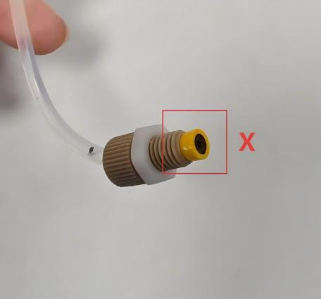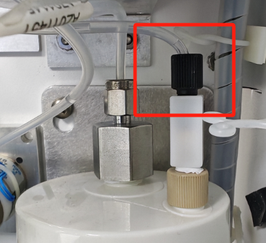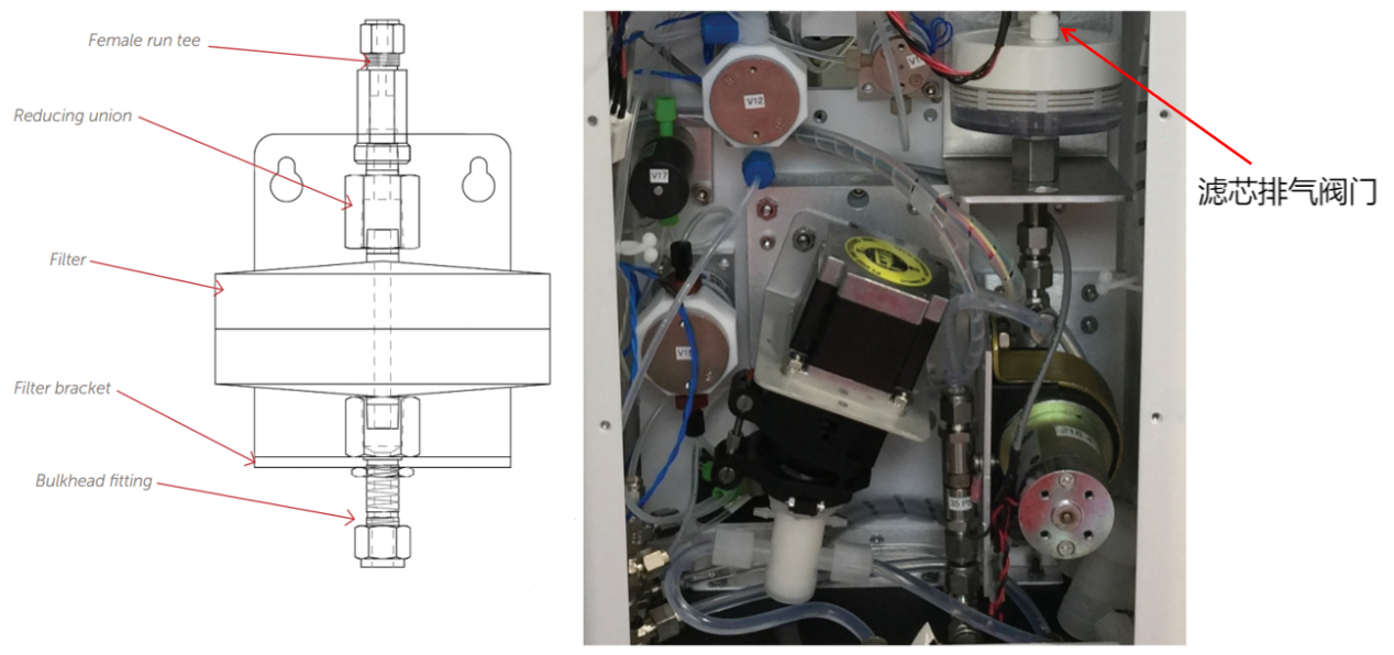 5 | ![]() | 顺着这个异径接头向上摸,将四通上的另一端拧开,滤芯就能从仪器上分离出来。 |