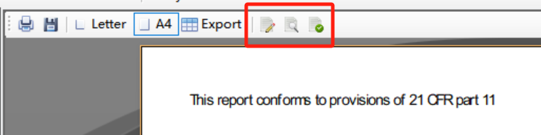 电子签名与打印:报告界面顶部右侧三个按钮可添加电子签名;在“sample explorer”中选定报告,点击打印机图标即可打印。